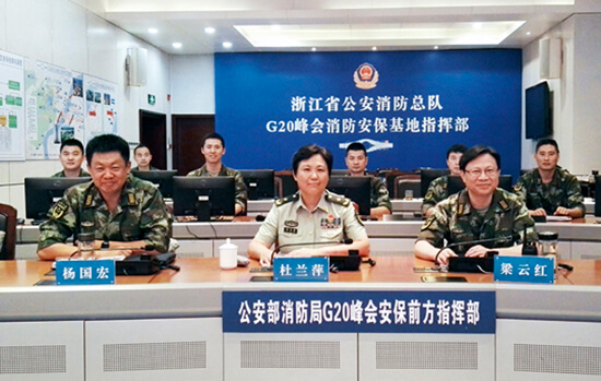 G20峰會消防安保要求如此之高、任務(wù)如此之艱巨,公安消防部門是如何應(yīng)對這場史無前例的挑戰(zhàn),采取了哪些科學(xué)有效的措施,是怎樣打贏這場特殊戰(zhàn)役的?帶著這些問題,本刊記者專訪了此次峰會消防安保前方指揮部副總指揮,公安部消防局副局長、總工程師杜蘭萍少將。